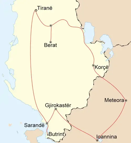 In the morning drive to Ioannina, a city with human habitation dating back 38,000 years to the Paleolithic period. You can visit the Fortress, once the heart of the Despotate of Epirus and later an Ottoman stronghold, and explore the Fethiye Mosque and Municipal Ethnographic Museum, rich with historical artifacts. Wander through the Historic Centre, lined with traditional shops and charming houses. In the late afternoon, continue to Gjirokastra, Albania, where your accommodation awaits. Spend the night immersed in the charm of Gjirokastra.