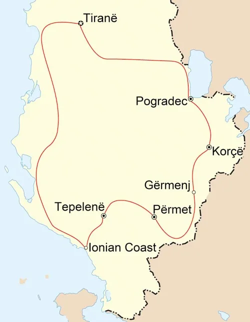 Today’s ride takes you along the breathtaking Ionian Coast, celebrated for its natural beauty and dramatic landscapes. Along the way, stop at the Bay of Porto Palermo, historically significant as a Cold War military base. In the centre of the bay, visit the ruins of Ali Pasha’s Fortress, perched on a picturesque peninsula. Pass ancient and medieval villages scattered across mountain slopes, adding to the ride’s charm. The journey continues through the lush Llogara National Park, where the vehicle awaits to transfer you to Tirana, marking the end of your cycling adventure.