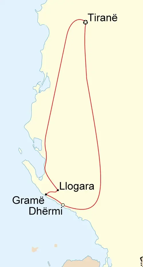 After breakfast, we will embark on a hike to the secluded Grama Bay. The trail starts at the hotel and leads through a dense forest toward Qafa e Thellë, the pass dividing the Llogara and Karaburun National Parks. From the pass, the guide will lead your way along a partially visible trail to reach the pristine Grama Bay, an untouched beach with crystal-clear waters. Once a historic anchorage point, the bay is rich with cultural heritage, including early Christian frescoes and Hellenistic inscriptions carved into the rocks. The evening will be spent immersed in nature, with accommodation provided in tents.