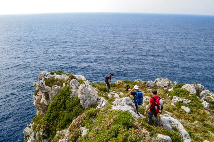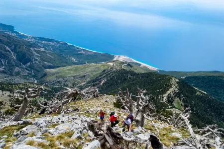 Today’s hike follows a scenic trail parallel to the sea, offering breathtaking views along the way. A break is planned at the St. Andre Bay, a secluded haven untouched by modern life, where you can relax or take a swim. The trail continues towards Palasë, a unique beach featuring a striking white delta formed by limestone sediments from the “stream of white roads.” In Palasë, a vehicle will be waiting to transport us to Dhërmi, where accommodation is arranged.