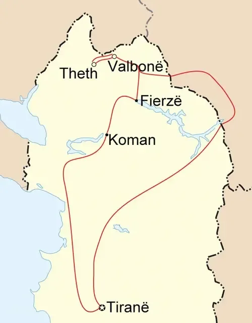 The transfer to Valbona takes you through the city of Gjakovë in Kosovo and back into Albania, passing Bajram Curri. Along the way, the road follows the Valbona River, revealing stunning views of the wild alpine landscape and dramatic peaks of the Albanian Alps.