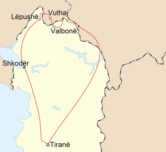 After descending to Lëpushë, your journey continues with a scenic transfer to the tranquil guesthouse in Vuthaj (Vusanje), Montenegro, where the day ends in comfort and relaxation.